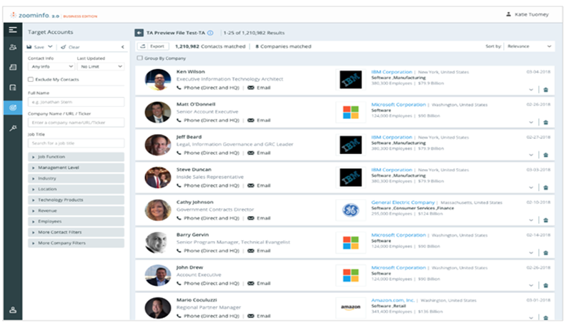 Easy to filter, hide/display columns, search for specific a company, industry, job title or person.READ MORE + -