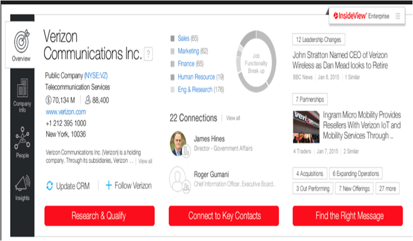 Business developers or sales professionals need to know a set of discrete data in order to determine whether or not the "prospect" will become qualified. We are providing company centric, structured data: company description and contact details, websites, ownership, revenue, profitability, growth, social media accounts with associated statistics, etc.